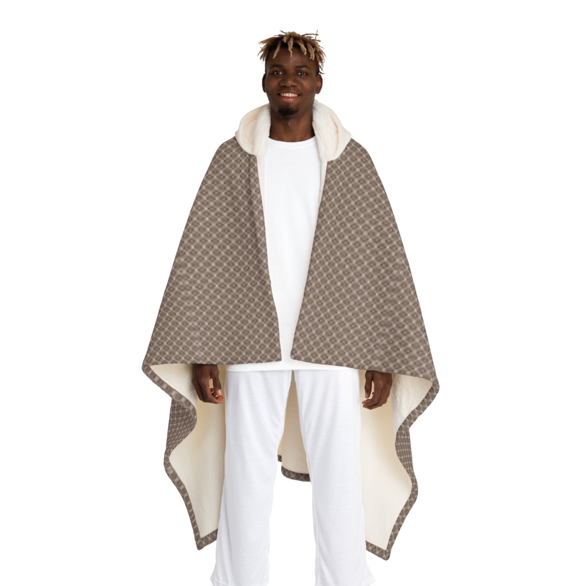 The Sherpa blanket is here to deliver fuzzy warmth and custom style. Made 100% with supremely soft polyester, this hooded fleece blanket is the perfect choice for keeping warm and cozy during the colder months of the year. Its cream-colored hood brings extra style points to your comfort. Add your unique design today, and create a unique winter staple.