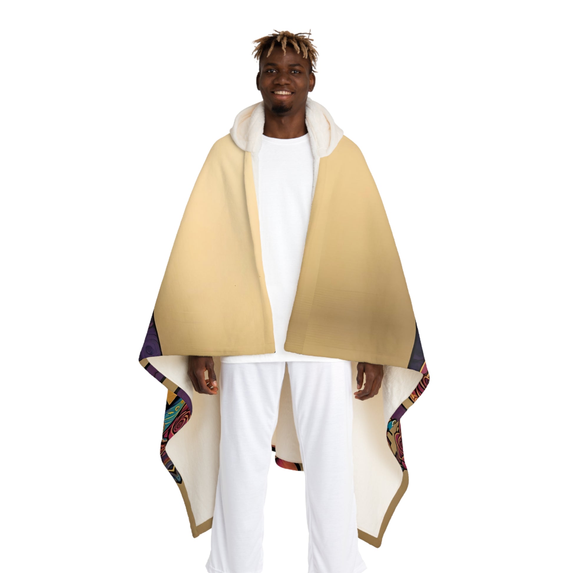 The Sherpa blanket is here to deliver fuzzy warmth and custom style. Made 100% with supremely soft polyester, this hooded fleece blanket is the perfect choice for keeping warm and cozy during the colder months of the year. Its cream-colored hood brings extra style points to your comfort. Add your unique design today, and create a unique winter staple.