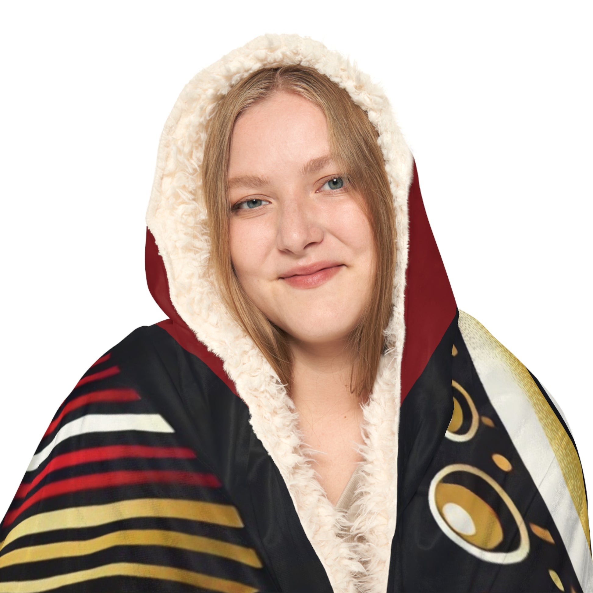There's no need to get out of bed when you can wear a blanket all day. These incredibly comfy and soft hooded blankets are the perfect choice for cozy days at home. The 100% polyester fabric ensures durability through regular wear. We'll print your original designs onto the front of the blanket in vibrant colors and high resolution. Choose between the two inner lining options – microfleece or sherpa.