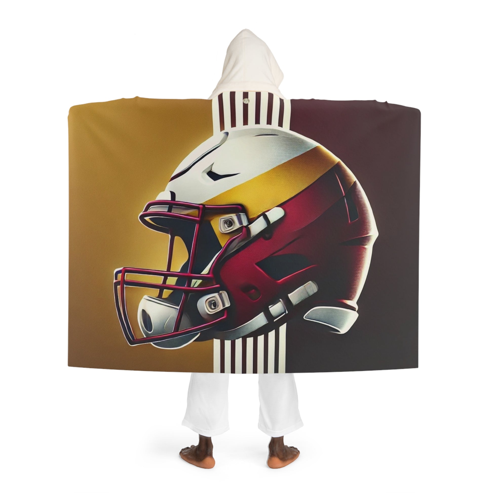 The Sherpa blanket is here to deliver fuzzy warmth and custom style. Made 100% with supremely soft polyester, this hooded fleece blanket is the perfect choice for keeping warm and cozy during the colder months of the year. Its cream-colored hood brings extra style points to your comfort. Add your unique design today, and create a unique winter staple.
